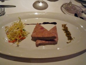 Porchetta and Pistachio Terrina with aged balsamic, frisee salad