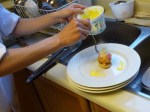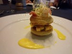 And food quality was not compromised for the price we paid. We started with a Sockeye Salmon Tataki. It’s a cool, refreshing start of the evening. The balsamic reduction and lemon oil were made from scratch, and they worked well with the salmon as well as the mussels. We then watched Ken build our next course, Seared Spot Prawn with Puff Pastry. It’s perfect to call this profession “culinary art” because it’s truly an art – it’s fascinating to watch Ken stack vertically the different components of the dish and avoid them from falling. It was a yummy dish. The spot prawn was fresh and the puff pastry was crispy. It’s too bad that the mangoes were not in season so the salsa was a bit too sour.