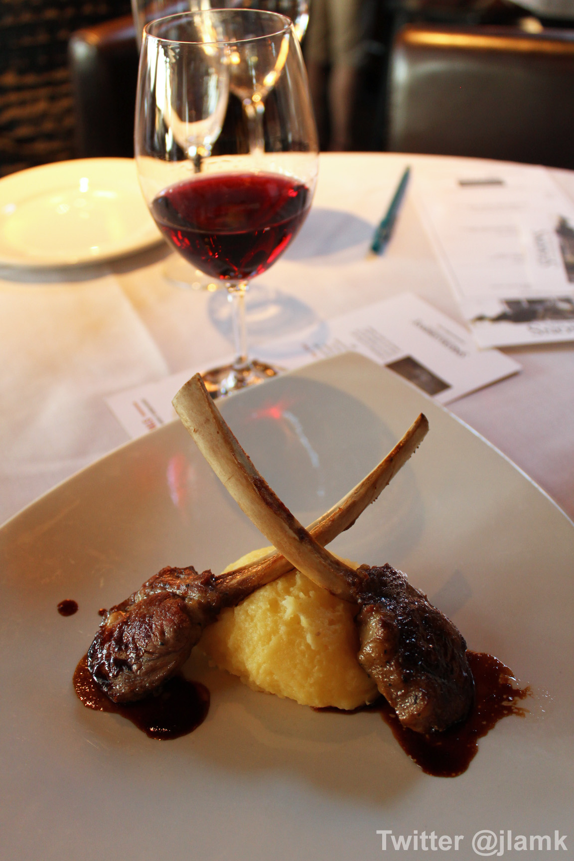 Mr: The lamb was delicious. Even though it was cooked to medium well, it was still juicy and tender. I don’t know a whole lot about red wine, pretty much all I can say is I enjoyed having the Pinot Noir with the Lamb Chop.