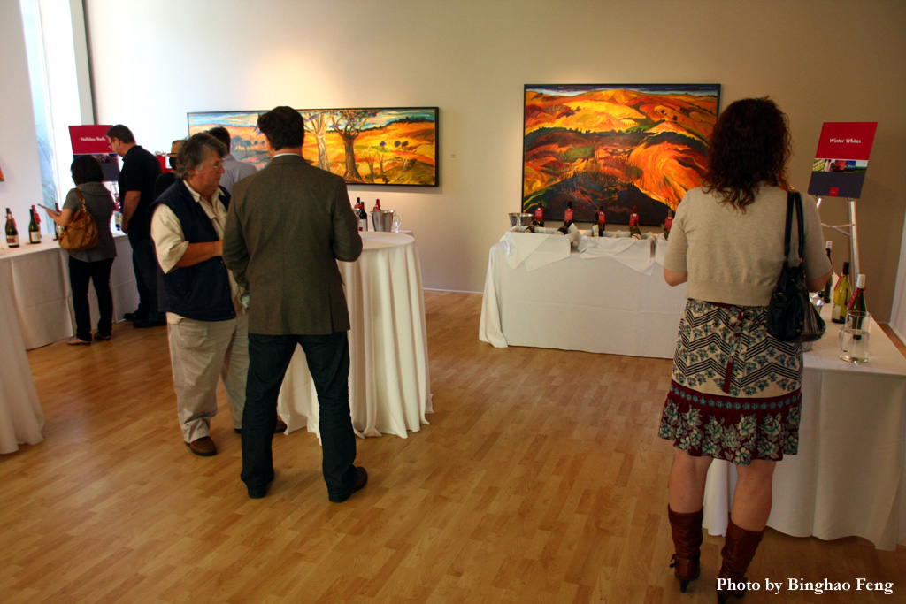 The huge selection was a little overwhelming at first, but after a few turns inside the gallery to orientate myself, it all made sense. The wines are organized in sections, with descriptions laid out; also, everything you need to know about every bottle of wine is in the guide book, organized in sections as well. The gallery is the perfect size and layout for this event. The separate, yet connecting rooms created a sense of flow, and aided in differentiating the many categories of wine.