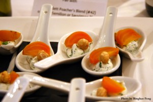 It was my first time attending an event of this format, and I was very impressed. The tasting was held at the Buschlen Mowatt Galleries on West Georgia, with a self serving format. That means the over 70 types of wine, 7 types of food pairings (since there was a lot more wine than food, I will refer to them as food pairings), and a whole lot of glasses are there ready for you the second you come through the door. It was hard to not go overboard: I had to keep reminding myself that I’m an adult, and moderation is a virtue. I think all in all I managed well.
