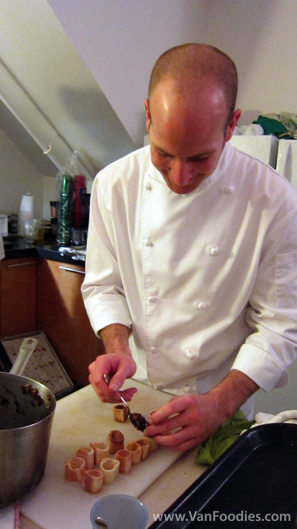 Chef Trevor not used to the camera flashes