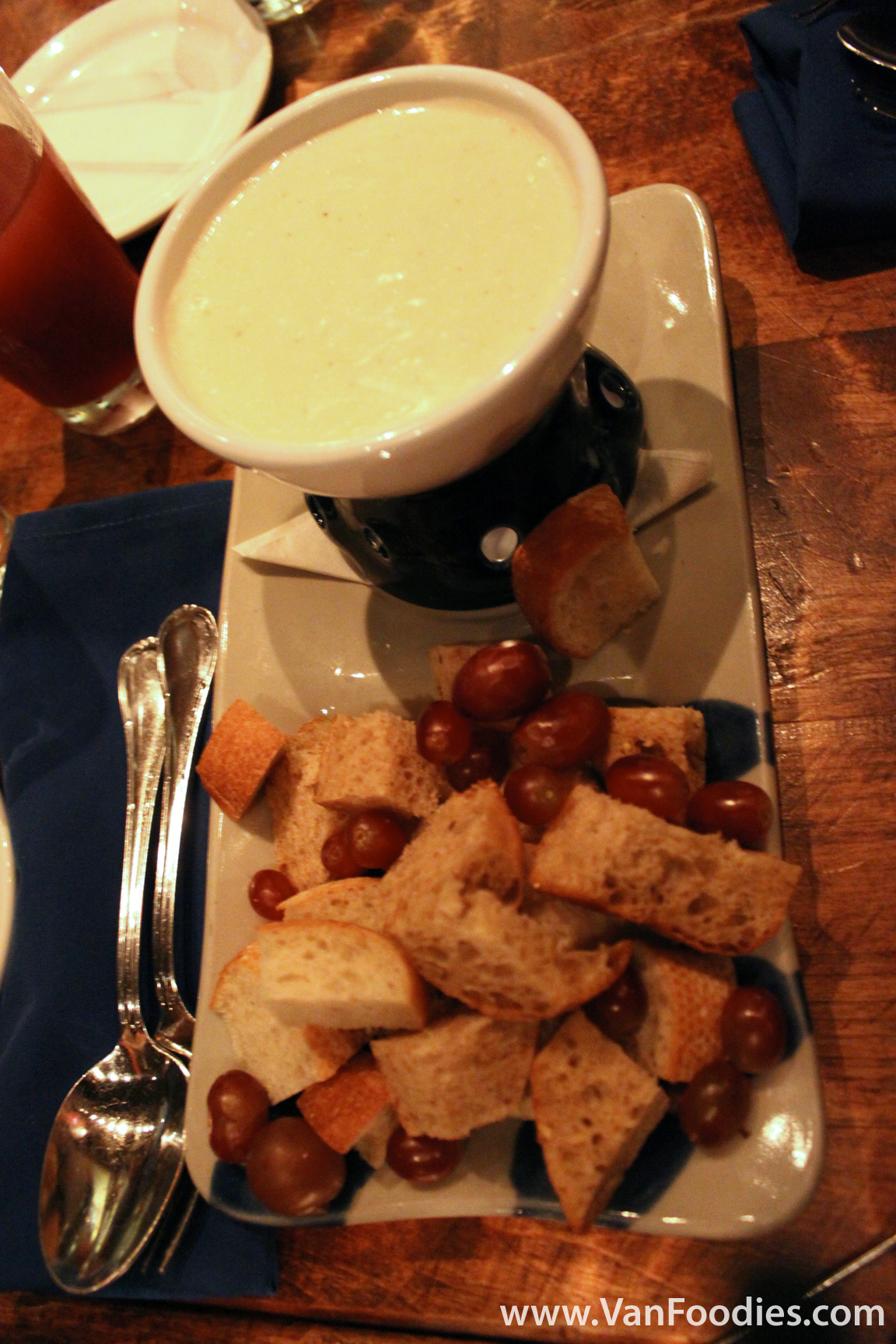 Fonduemental – molten Gruyere & Emmenthal, white wine and herbs served with red grapes and crusty bread