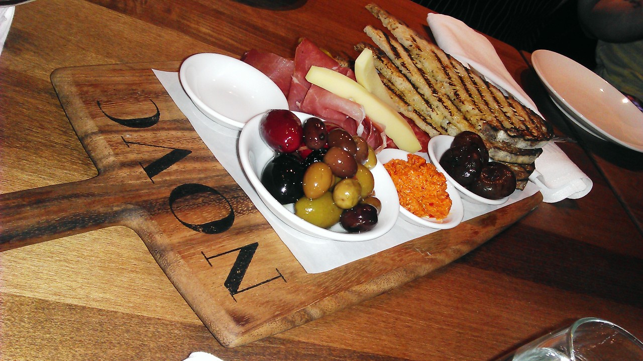 The feast began with two filled antipasto dishes. The bread took centre stage. It was thinly sliced, brushed with olive oil, and then grilled to perfection. Just look at how amazing it is!