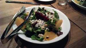 That was followed with a beet salad. Sweet, sweet beets topped with spring mix, roasted nuts, and feta cheese (I think, wasn’t able to taste any). It wasn’t anything extraordinary, but a nice combination of quality ingredients nonetheless.