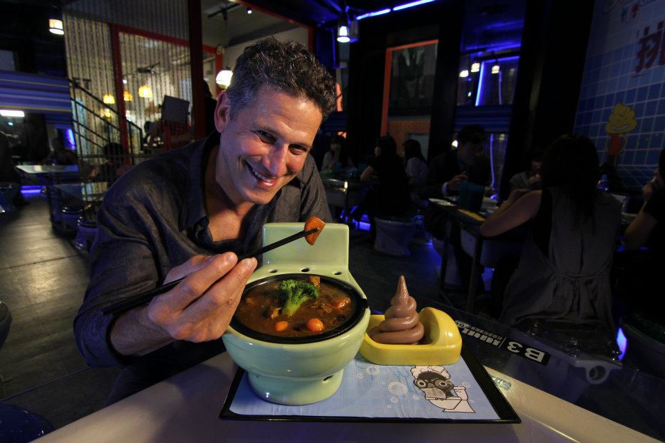 Eating out of plastic toilet bowl in Taipei – Photo Credit: The Show’s Facebook Page