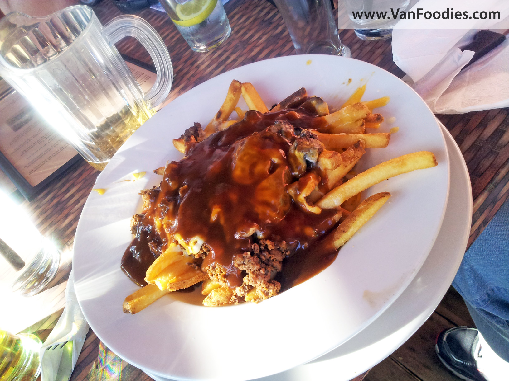 Fort Poutine – Heaping bowl of house fries topped with spicy ground beef, sauteed onions, mushrooms and blended cheeses, then baked and drenched in beef gravy