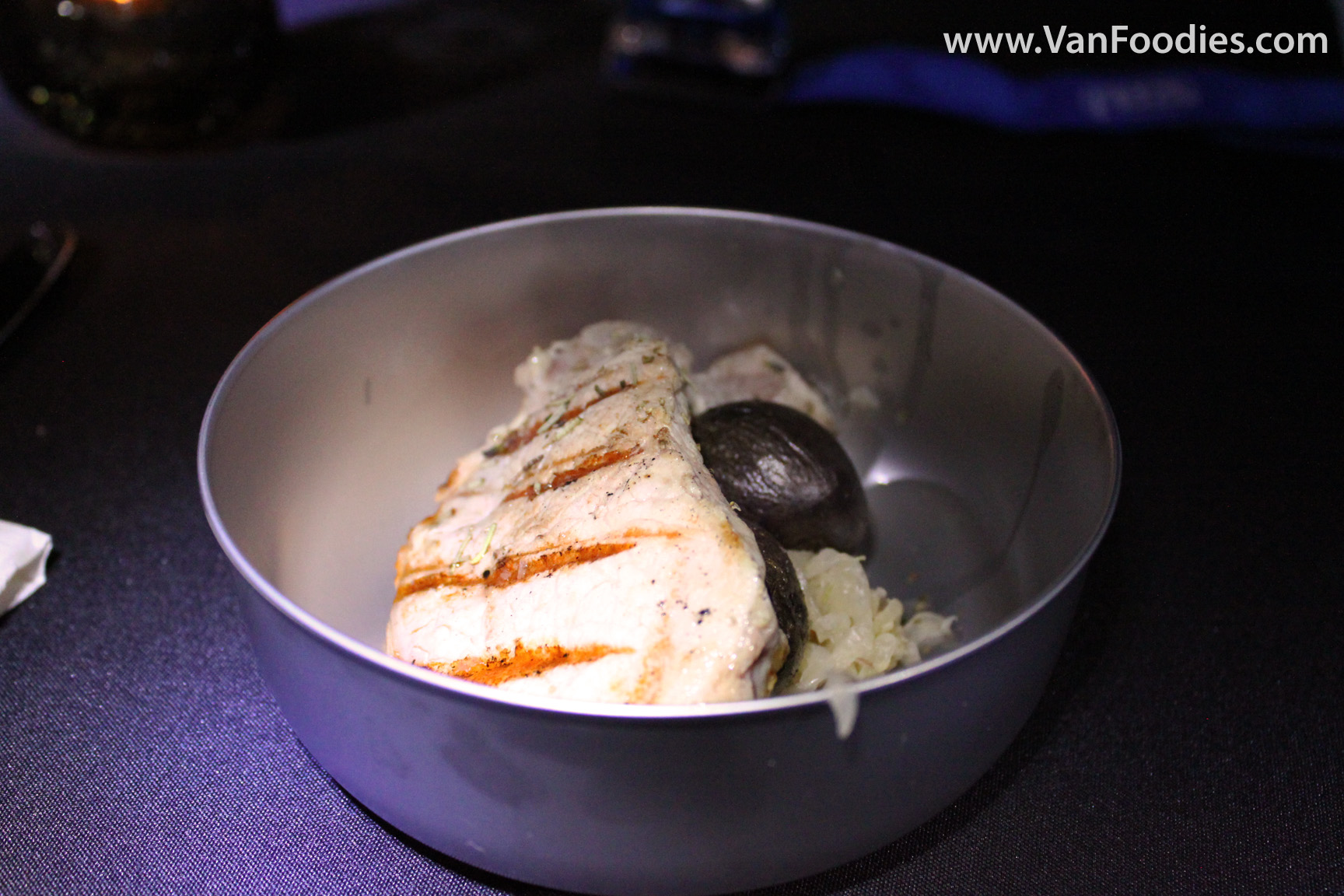 Pork Chop, Roasted Purple Potatoes, Sauerkraut