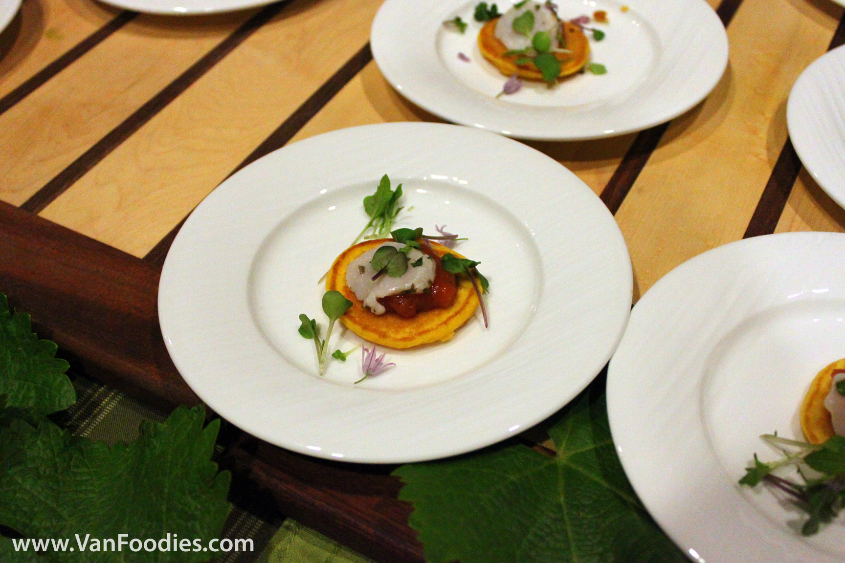 The Sonora Room – Scallop Ceviche, Roasted Heirloom Tomato Jam, Ham Roasted Carrot Bilini, Micro Greens