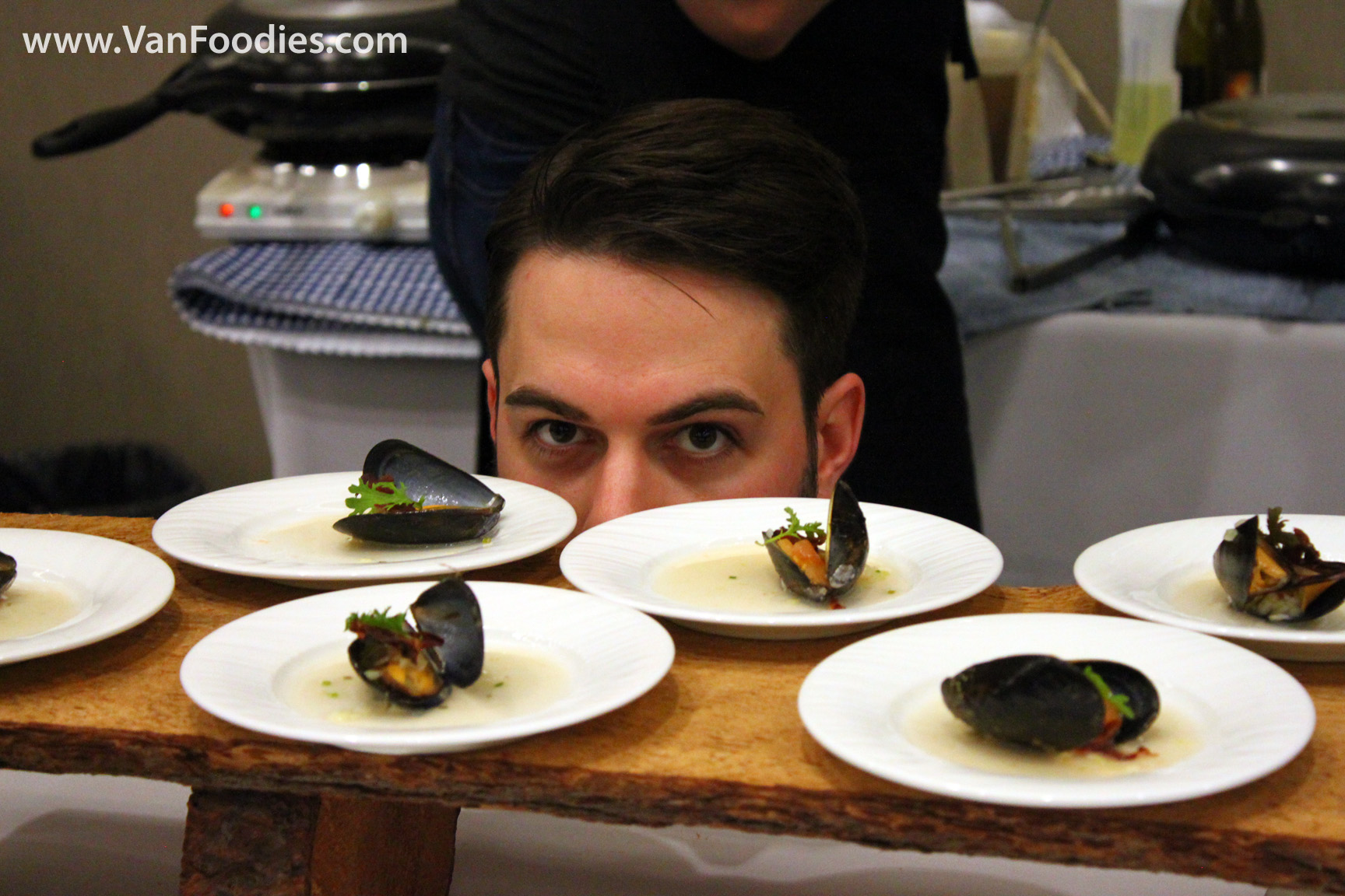 NK’MIP Cellars Patio Restaurant – Troy Farm Quadra Island Mussel, Roma, Fennel Butter, House Cured Pancetta, Pickled Organic Garlic Scape