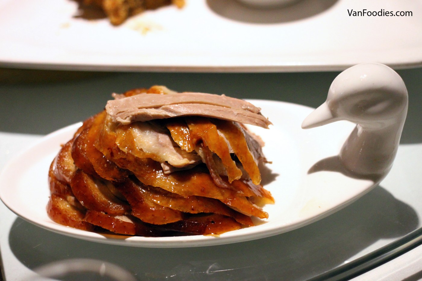 But we were all distracted by what’s happening on the table-side. It’s the Chang’an Roasted Duck 長安炙鴨! This was what we came here for. It’s the restaurant’s signature dish, and you must pre-order ahead of time. Why? Because it takes 72 hours to prepare the duck, then it’s roasted in-house for over an hour. According to the restaurant, they actually schedule the cooking time based on your dinner reservation, so it would be served roughly 15 minutes after you are seated, ensuring the optimal tenderness of the meat and crispiness of the skin.