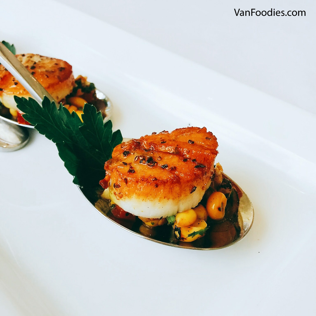 e’s lunch menu is quite interesting. I like that they incorporate their wine into many of the dishes. We shared a few appies, including the Seared Scallops. There was nice caramelization on one side of the scallops, the scallops were cooked to the right temperature, tender and sweet. The roasted corn salsa gave it some smokey flavours and crunch. For us, they were served on a spoon and it made a perfect bite (Mr. really liked it, because he always wants “a bit of everything in each bite”).