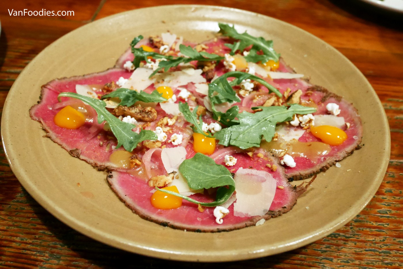The menu at Wildebeest is designed for sharing. The “Smaller” plates are appetizer size, and the “Larger” plates are similar to entree. But then, the way how they put each plate together, it just makes sense to share everything vs. enjoying the whole dish by yourself. And this allows us to try more things in one seating too. I was honestly very impressed that SM and Chris were open to trying all the game meat. We’re Chinese so we eat everything, but not many Caucasians are adventurous eaters. They are big on texture and flavours, so not many of them would try the dishes that we ordered here at Wildebeest.