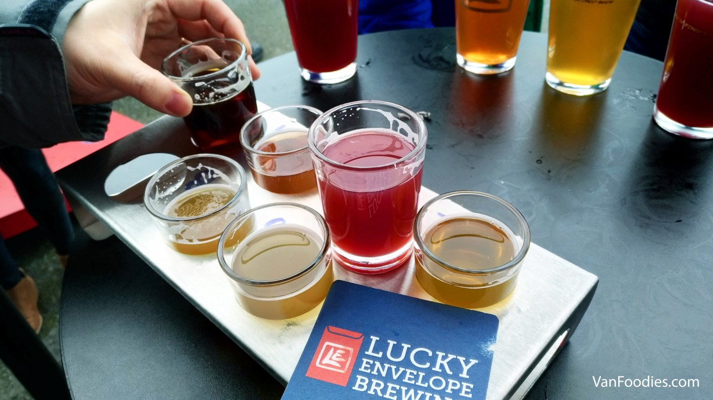Made an interesting observation here – none of these breweries sells a flight of beers. In Vancouver, you always see beer flights on the taproom menus, for a flight of 4 or 5. Here, there is a price for Tasters, and you just pay for the total number of tasters you want. And the pedals can accommodate more than 4 or 5 tasters. At Lucky Envelope, theirs can hold 8. Stoup’s holds 6. I almost like this system better, since we are not bound to choose just 4 or 5 beers to try. But I also noticed how quickly our bills added up once we knew we could order more to try more.