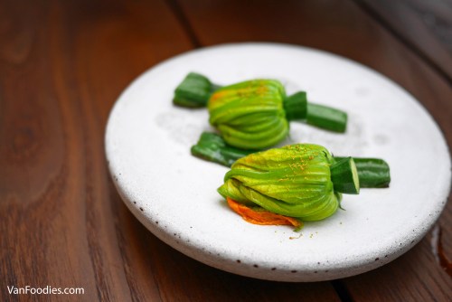 Squash blossom with yogurt, fennel seeds and fennel pollen — the fennel flavour on the squash blossom was very nice.