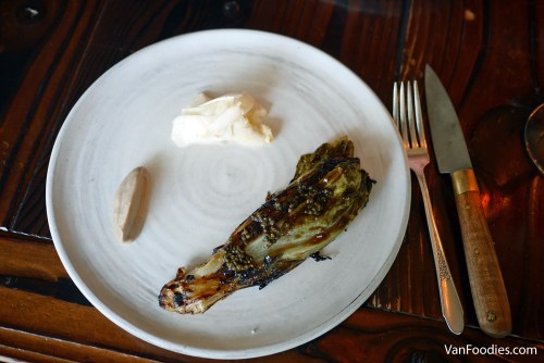 Charred sword lettuce, barbequed with porcini mushroom liquid and stuffed with porcini mushrooms puree, accompanied by house made bread and local cultured butter — we actually went outside to the BBQ to watch the chef in action. This main dish might be vegetarian but there’s so much effort in making it. It was hefty portion too.