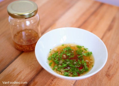- Add vinegar, soy sauce, garlic, shallot and chili pepper. Mix well and let it cool.