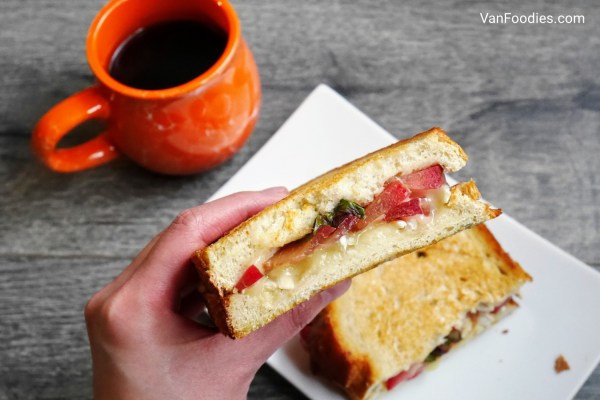 Recently I got my hands on some Chilean pluots. I decided to make a grilled cheese sandwich with them. Now I don't think plum and cheddar, the typical choice of cheese for grilled cheese, go together, so I've substituted it with brie. And to elevate it, I opted for sourdough for a chewy texture and some tang in flavours.