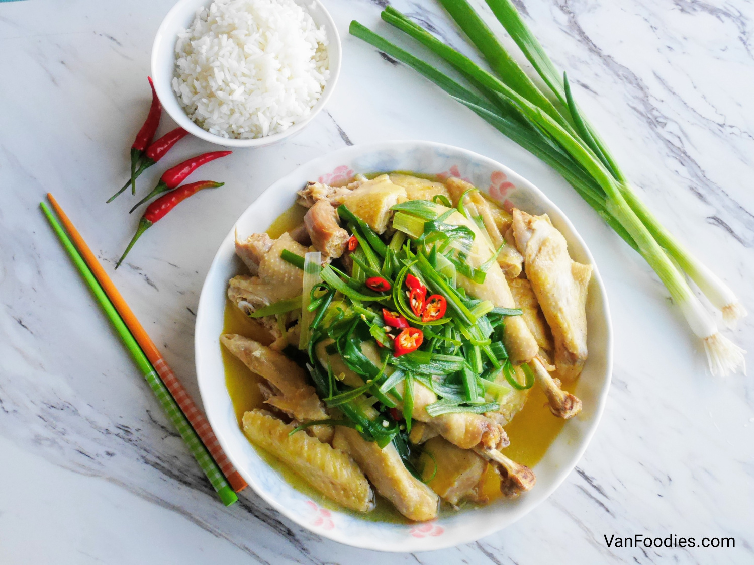 There are many other ways to enjoy BC-raised Asian chickens. Mr. loves soy chicken 豉油雞, but honestly this Steamed Chicken with Spicy Green Onion Broth 葱油淋雞 is my favourite. I can taste the natural flavour of the chicken, while it’s enhanced by a bit of heat from the Thai chili peppers and the mild earthy taste of the green onions.