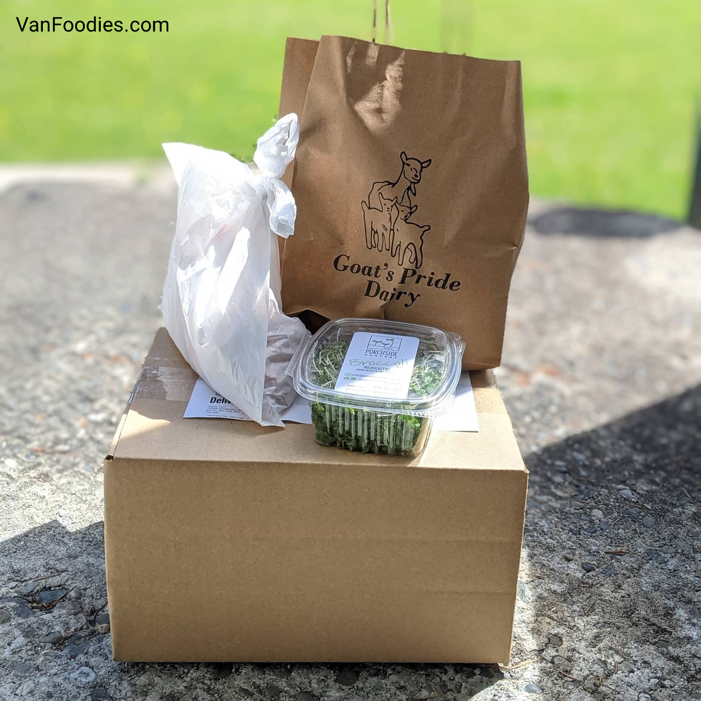 This menu was made possible with an interesting selection of products available at directfood.store, an online grocery platform that provides a digital marketplace for local farms. I recently ordered a delivery, complimentary of the company, and I was intrigued by what they offer. We found unique ingredients such as goat meat, sea asparagus, fiddleheads (no longer available), broccoli microgreens, goat milk yogurt and dried chanterelle. These are not something I see at grocery stores everyday. My shopping list came to be about $50 and they were gathered for our delivery directly from local farms/food producers. There’s no fancy packaging – product(s) from each company was packed separately so we received an assortment of bags and boxes in one delivery.
