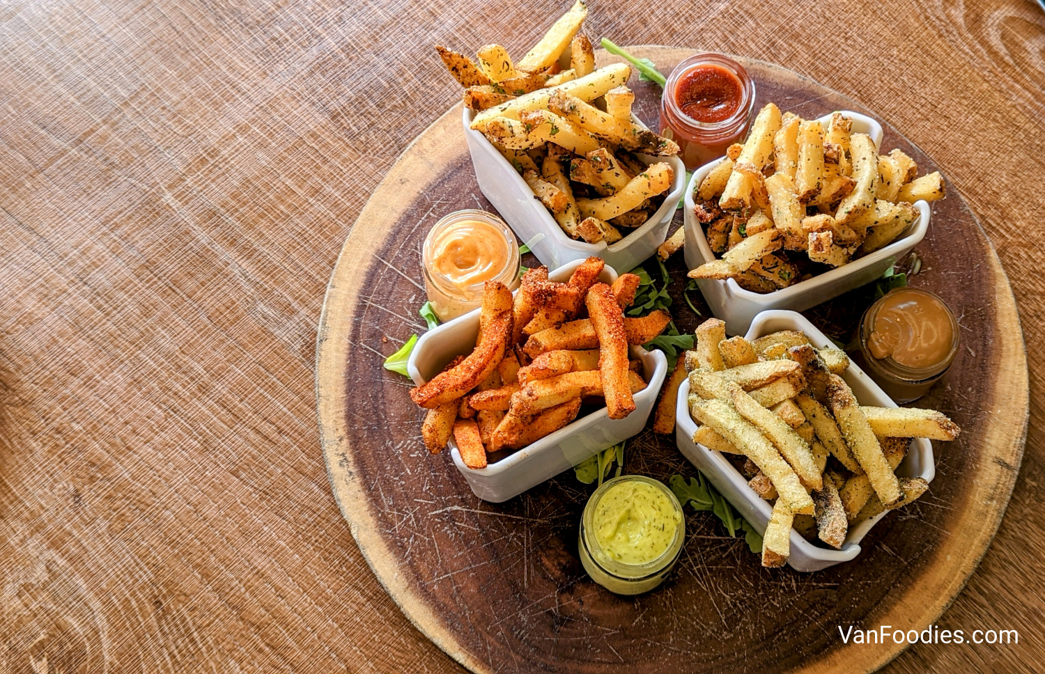 From the kitchen, we ordered the Flight of Frites. It’s usually only available during Happy Hour, but essentially we ordered a half-order each of the four flavours of Tallow Frites to turn them into a flight. It’s the best way to sample the flavours. And they were all amazing! I mean, you can’t really go wrong with fries fried in beef fat but they were perfectly fried and seasoned very well, and each flavour and its accompanying sauce went well together. My favourite were the Padano with Black Garlic Mayo and Salt & Pepper with the TIME Merlot Catsup.