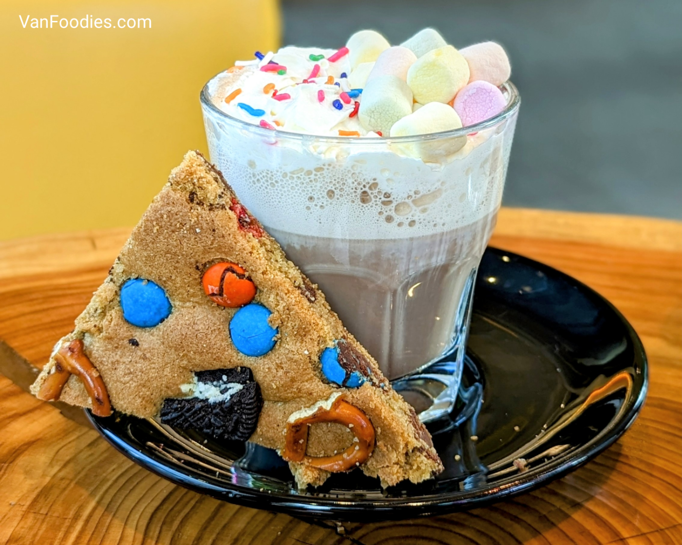 The first one has a cookie “pizza” slice! The Ultimate ‘Kids’ Hot Chocolate is a creamy milk chocolate topped with whipped cream, sprinkles, and mini marshmallows. The “pizza” slice was covered in classic candies, such as M&Ms, Oreo and pretzels. It was a bit too sweet for my liking given all the sugary goodness that’s in the drink as well as on the cookie, but I can see its appeal to children. In fact, I showed a picture to a mom and she thought her kids would definitely choose it.