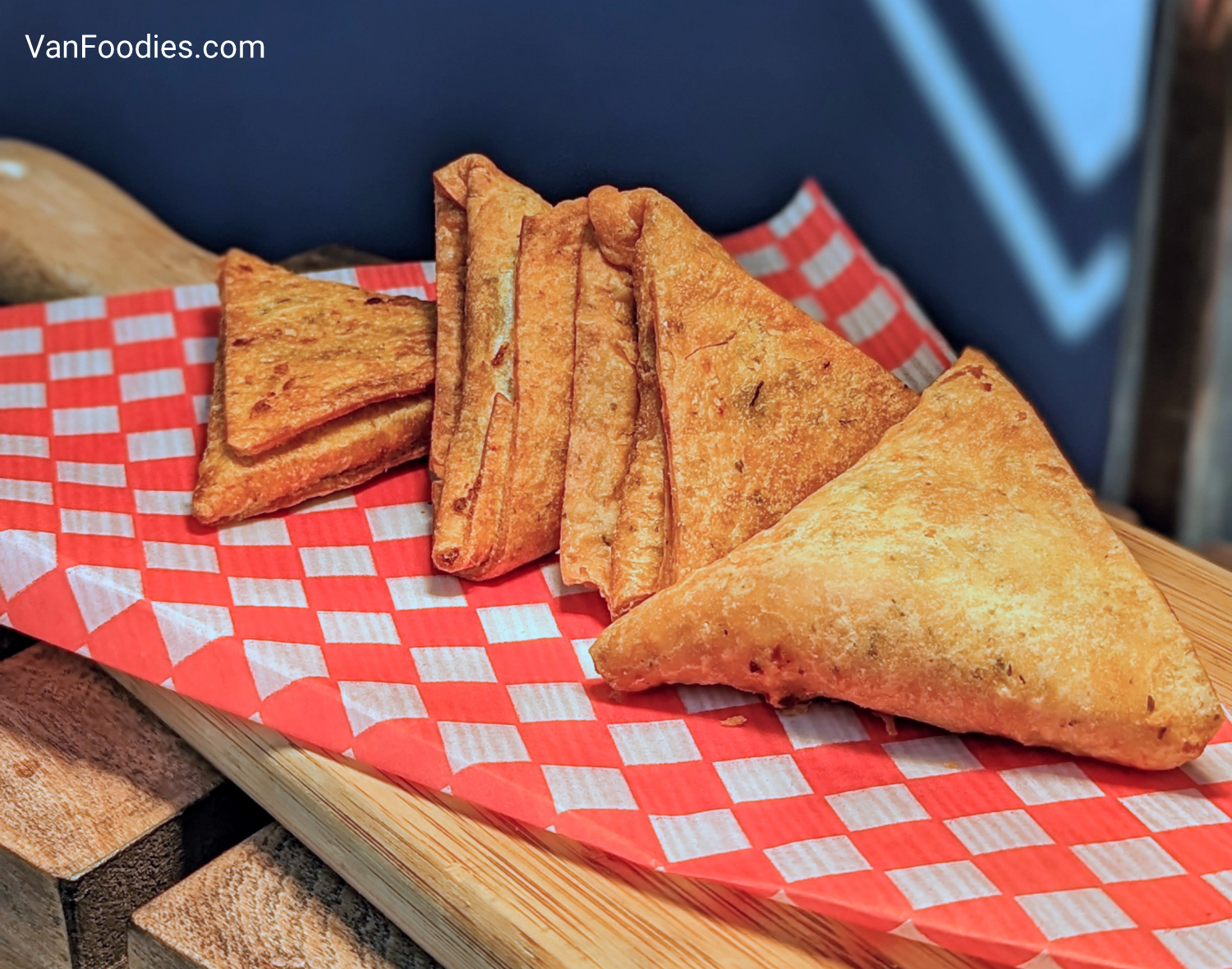 Handmade Vegetable Samosas (vegetarian) – peas, carrots, potatoes, spices. Fun hand-held food that’s not available at a typical concession stand!