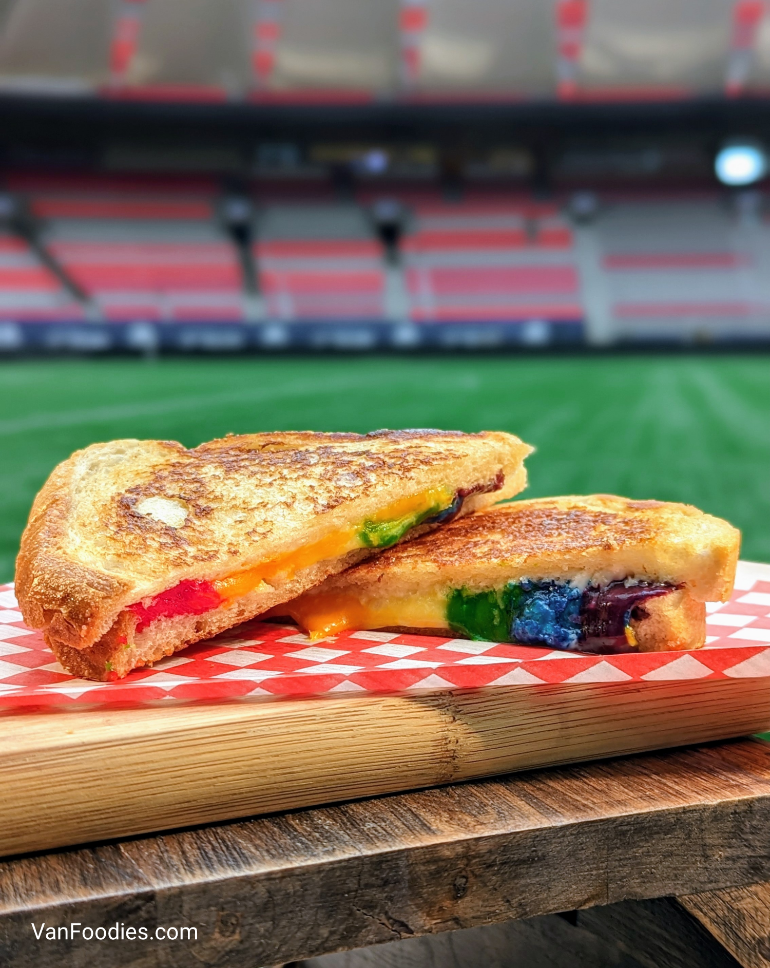 Rainbow Grilled Cheese (vegetarian) – mozzarella cheese, sourdough . This is only available on Pride Night on July 8. But how fun is this?