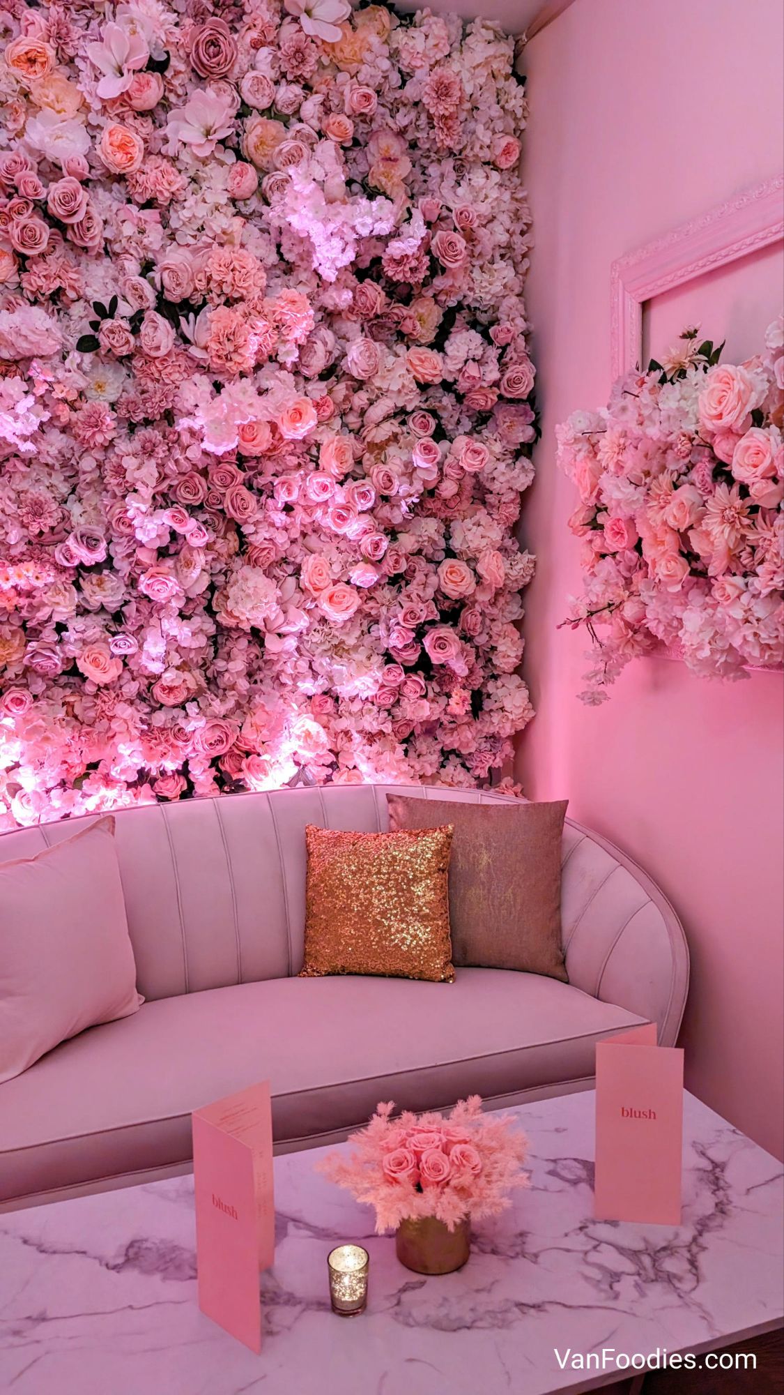 I’m quite in awe of how Fairmont Vancouver is transforming this space on the lower level for different pop-ups. First, it was Kringle’s for Christmas, and now Blush for Valetine’s Day. Make sure to look for the pink photo booth at the entrance. Will you check it out?