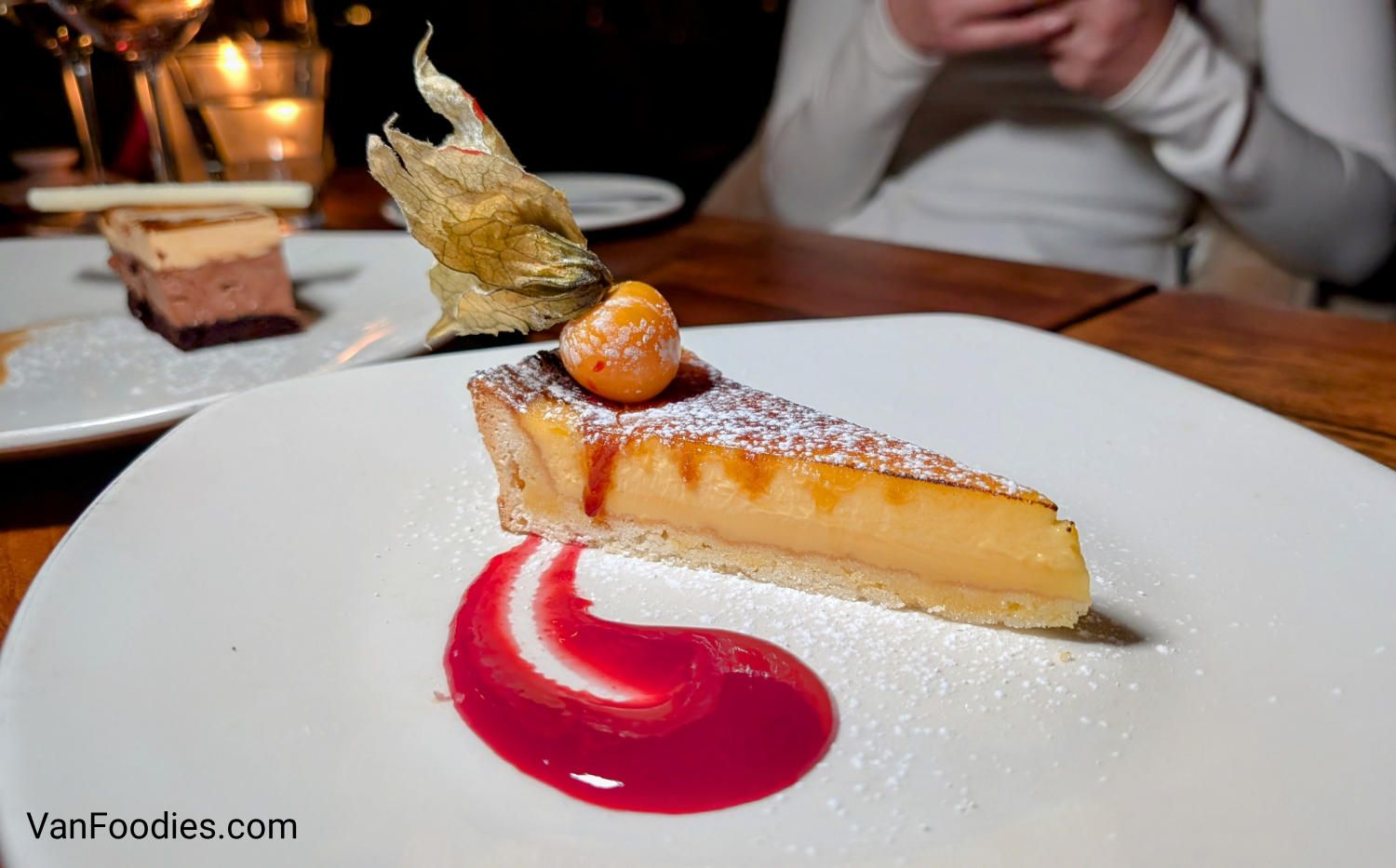 For your sweet finish, it all depends if you prefer a refreshing, fruity tart, or a piece of decadent cake. You can’t really go wrong with either.
