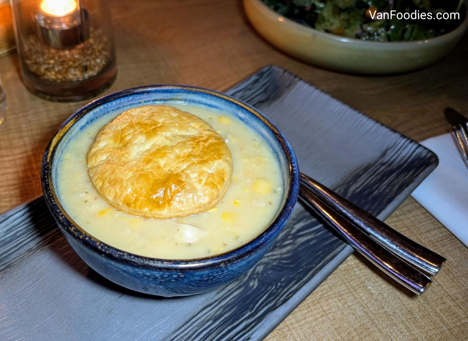 For appetizer, you can choose from Chicken & Corn Chowder or Kale & Quinoa Salad. Both were of substantial size! The Chicken & Corn Chowder was topped with a piece of puff pastry. It had lots of ingredients in the chowder, and there were big chunks of chicken.