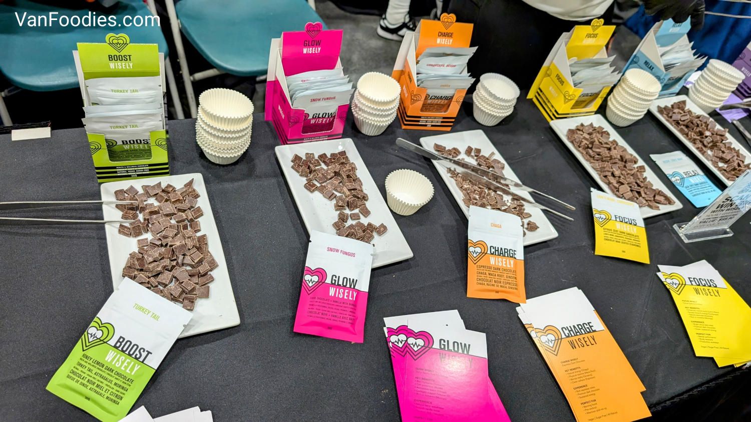 Wisely Wellness Functional Chocolates – Based in BC, they literally just launched the brand and products at The Wellness Show, with ribbon cutting and all! They infuse chocolate with non-psychedelic mushrooms and other functional botanicals, creating sweet treats that boost your energy, improve your sleep, make your skin glow, and more. I sampled a few flavours and I found them quite tasty. It’s well balanced so the mushrooms/botanicals aren’t very prominent in flavours, but you are enjoying the benefits of them all the same. According to the team at the booth, one chocolate bar has six squares, and your daily serving size is one square.