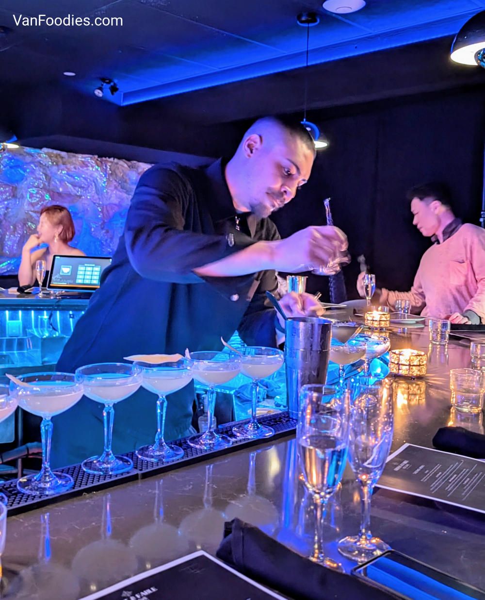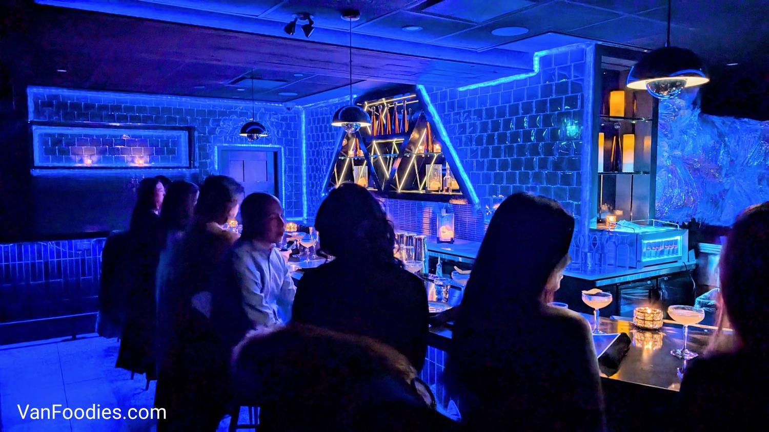 First of all, the space is actually quite intimate, dimly lit with an ice motif along the walls and roughly 20 seats around the bar. The overall black and blue interior adds a layer of cool, mysterious vibe to it.