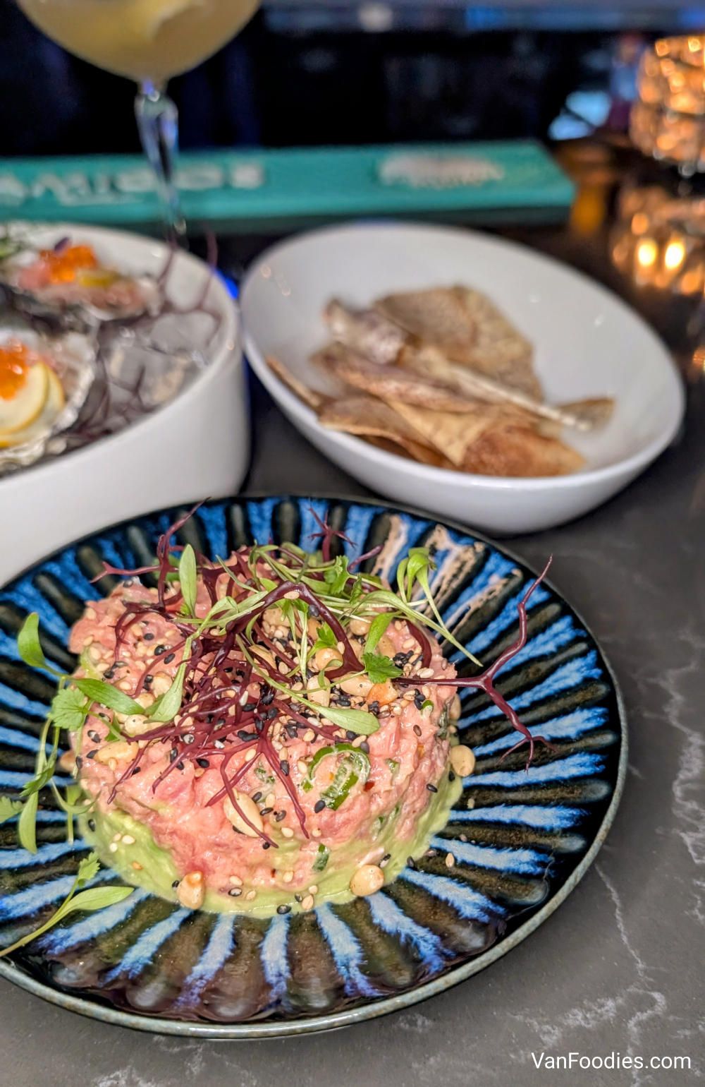 In terms of food, the menu is headed by Chef William Lew, who’s the Director, Food & Beverage Division, of Pacific Reach, the company that manages Hotel Belmont and a few other properties in Vancouver. Chef Lew is also an ambassador for Ocean Wise and Chinese Restaurant Awards, and is often seen collaborating with local food makers. Case in point, I learned that the bite menu here uses the MAMAintheKitchen chili oil, and we saw owner Sharon help out at the preview as well.