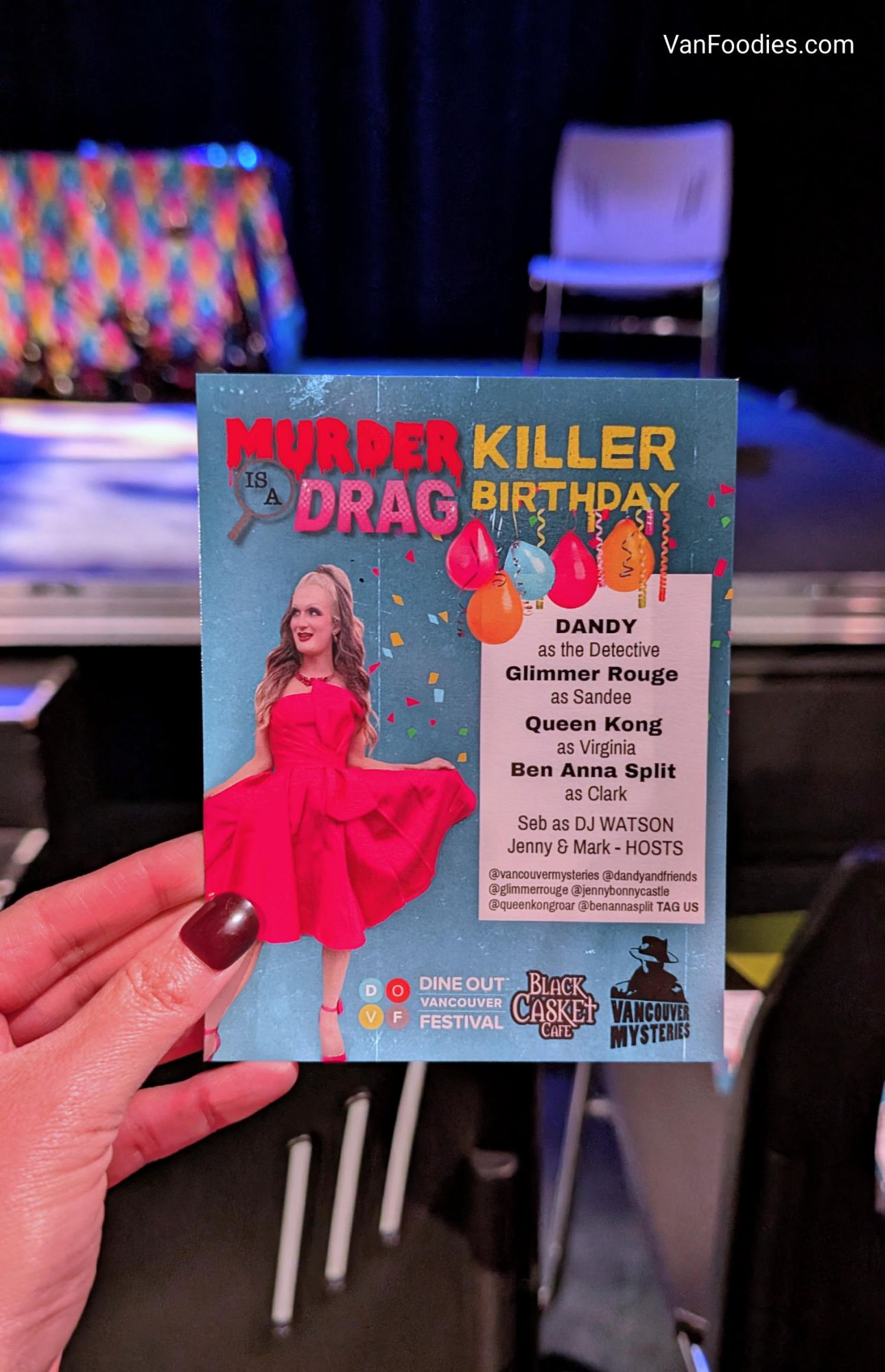 A surprise birthday party turned deadly and it’s one of Dine Out Vancouver 2026’s Tasty Events this year. Killer Birthday is the 4th chapter of Vancouver Mysteries’ Murder is a Drag series, and it was so. much. fun! The event promptly starts at 8pm so we arrived at around 7:30pm to get settled in. There are a few guest roles that the audience can play, so I would suggest you to arrive even earlier if you want to participate (door opens at 7pm).
